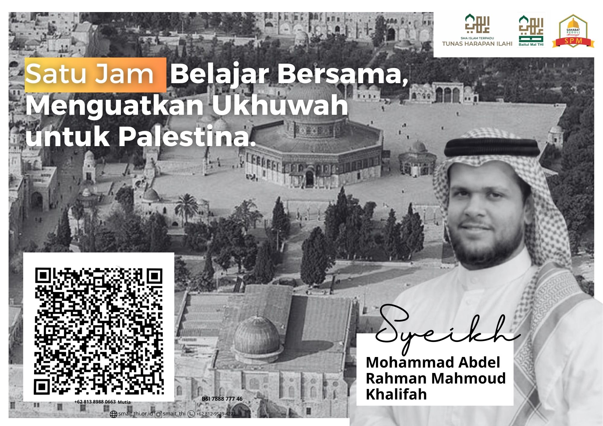 Kegiatan yang menghadirkan Syeikh Mohammad Abdel Rahman Mahmoud Khalifah ini berhasil mengumpulkan donasi sebesar Rp9.020.000. Seluruh dana yang terkumpul akan disalurkan melalui lembaga kemanusiaan SPM (Sahabat Peduli Memanggil) untuk membantu saudara-saudara di Palestina.