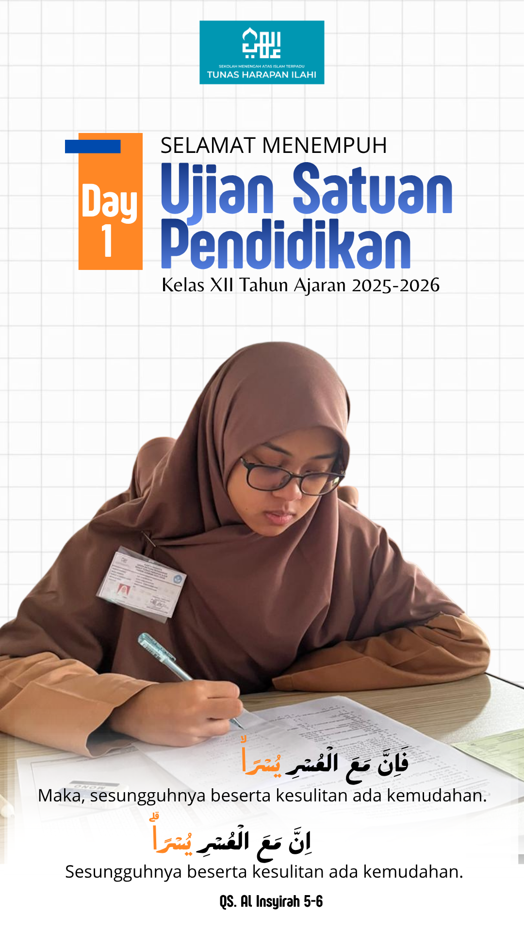 Kutipan ini menjadi pengingat bagi para siswa bahwa setiap tantangan dalam menjawab soal ujian adalah bagian dari proses menuju kemudahan dan kesuksesan di masa depan.