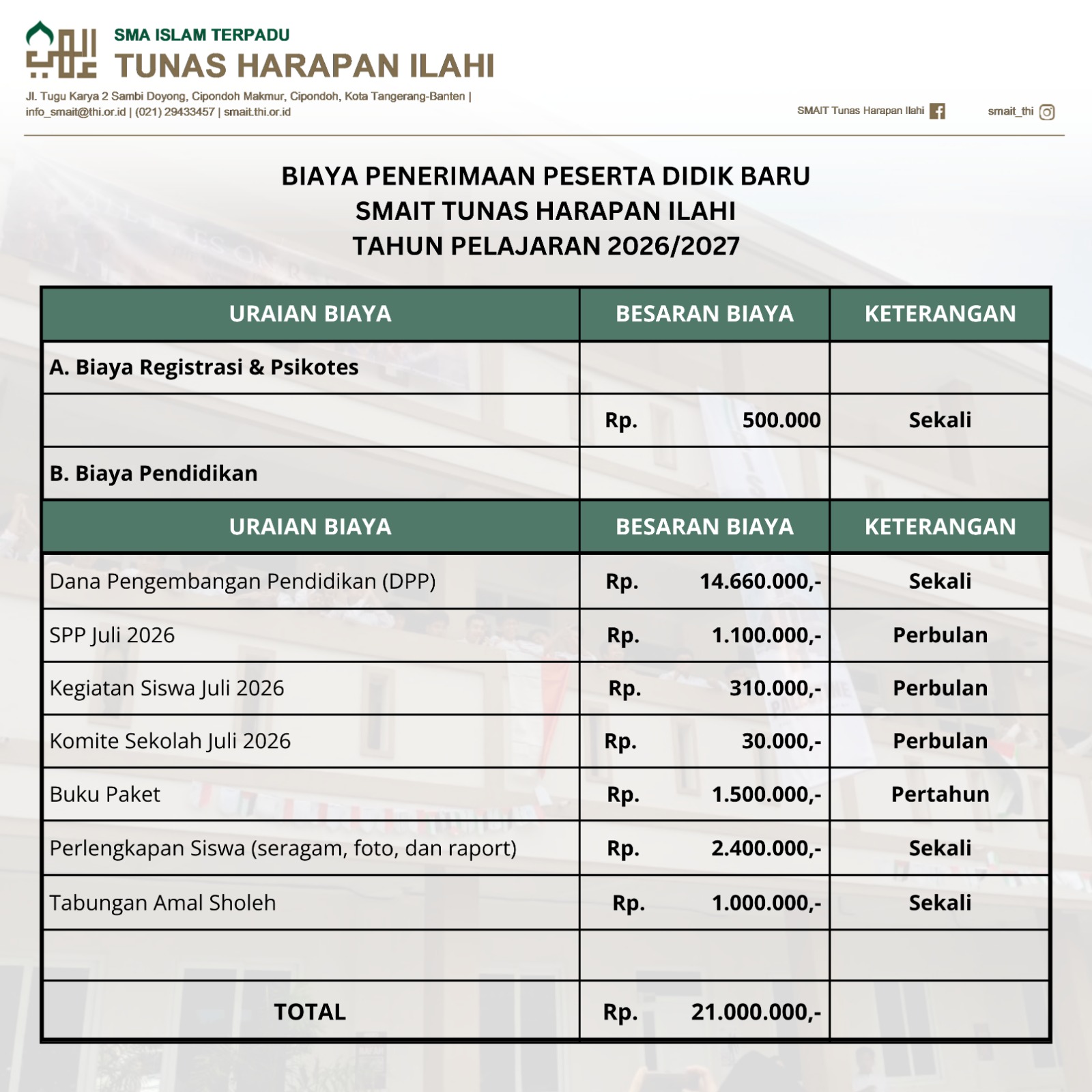 BIAYA PPDB 2026-2027 - SMAIT Tunas Harapan Ilahi